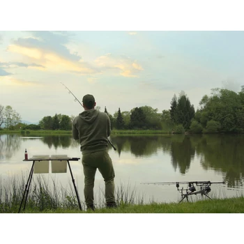 A Delphin TOP SPOD egy ötletesen megtervezett vödörtartó állvány, jól átgondolt kialakítással, amely nemcsak stabilitást, hanem mindenekelõtt sokoldalú felhasználást kínál – lehetõvé téve a legtöbb szabvány pontyhorgász vödör ráhelyezését. Az állvány váza kiváló minõségû anyagokból készült, amelyek ellenállnak a külsõ behatásoknak és a mechanikai sérüléseknek. A stabilitást négy darab levehetõ, teleszkópos láb biztosítja – ezek segítségével az állvány magassága könnyedén beállítható az egyéni igényeknek és a terepviszonyoknak megfelelõen. A lábak különálló bottartóként is használhatók. A felsõ rész két vödör egyidejû rögzítését is lehetõvé teszi, ráadásul a váz mérete állítható, így különbözõ méretû vödrökhöz is illeszkedik. Ez kétségtelenül az egyik legnagyobb elõnye, ami kiemeli a piacon kapható más modellek közül. A szerkezet felsõ részén egy tárolófelület is található, amely különféle kiegészítõk, például etetõrakéta vagy ujjvédõ elhelyezésére szolgál. Ez a rész vízelvezetõ nyílásokkal van ellátva, hogy az esõvíz könnyen távozhasson róla. A szerkezet másik oldalán két bottartó kapott helyet. A nem kívánt sérülések elkerülése érdekében ezek EVA habbal vannak bevonva, amely kiváló védelmet nyújt a bennük tárolt botok számára. Összecsukott állapotban az állvány kompakt méretû, így minimális helyet foglal. Praktikus textiltáskában kerül forgalomba, amely megkönnyíti a szállítást és tárolást. Ha unod már, hogy állandóan hajolgatnod kell a csalis vödrökért, a Delphin TOP SPOD a tökéletes választás számodra! Mûszaki adatok: Felsõ rész méretei: 60x31 cm Minimum vödörméret: 15x27 cm Maximum vödörméret: 25x27 cm Lábak méretei: 57 cm – 100 cm Súly: 2100 g |