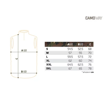 Hõszigetelt mellény, amely kiváló hõkomfortot biztosít a hideg õszi vagy téli napokon. Olyan anyagból készül, amely kellemes tapintású és könnyen tisztítható, így nagyon praktikus viselet horgászathoz és egyéb szabadtéri tevékenységek során. A kabát vízszintesen is steppelt, így stílusos látványt nyújt. Bélése ultrakönnyû, és kiváló hõszigetelést biztosít. A kabát zárása kiváló minõségû cipzárral van megoldva, amely kívülrõl szövetcsíkkal borított, hogy jobban ellenálljon a külsõ körülményeknek. Mindkét oldalon kellõen nagy zsebek találhatók kezeink melegítésére, vagy a szükséges kiegészítõk tárolására. A CamoWAY mellény megemelt gallérral rendelkezik, hogy alacsony hõmérsékleten jobb nyak- és tarkófedést biztosítson viselõjének. A dizájn a sötétbarna szín és digitális hatású terepszínû minta kombinációjából áll, amelyet világos színû elegáns CamoWAY logó egészít ki. Anyagösszetétel: 100% poliészter |
