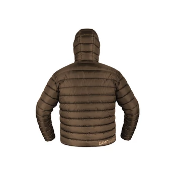 Hõszigetelt kabát, amely kiváló hõkomfortot biztosít a hideg õszi vagy téli napokon. Olyan anyagból készül, amely kellemes tapintású és könnyen tisztítható, így nagyon praktikus viselet horgászathoz és egyéb szabadtéri tevékenységek során. A kabát vízszintesen is steppelt, így stílusos látványt nyújt. Bélése ultrakönnyû, és kiváló hõszigetelést biztosít. A kabát zárása kiváló minõségû cipzárral van megoldva, amely kívülrõl szövetcsíkkal borított, hogy jobban ellenálljon a külsõ körülményeknek. Mindkét oldalon kellõen nagy zsebek találhatók kezeink melegítésére, vagy a szükséges kiegészítõk tárolására. Baloldalon a mellkason egy további zseb található, amely ideális mobiltelefon vagy dokumentumok tárolására. A CamoWAY kabát kapucnival is rendelkezik, amely húzózsinórral állítható. Az ujjak a végeiken enyhén elvékonyodnak, és puha gumival vannak ellátva, hogy szorosan illeszkedjenek a csuklóhoz. A dizájn a sötétbarna szín és digitális hatású terepszínû minta kombinációjából áll, amelyet világos színû elegáns CamoWAY logó egészít ki. Anyagösszetétel: 100% poliészter |
