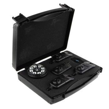 Alacsony áramfelvétel, nagyméretű jelző LED és modern kivitel jellemzi ezt a remek kapásjelzőt, számos beállítási lehetőséggel. Kapás utánjelzéssel, 150-300 m-es hatótávolsággal. A kapásjelző és a vevőegység hátsó reteszébe helyezzen el egy 9V-os tartós elemet a polaritásnak megfelelően. Be- és kikapcsolás: A V-gomb 2 mp-ig történő lenyomásával. A készüléken a funkciólámpa (bal oldali LED) felvillan, majd hangjelzés hallható. Hangerő szabályozása: A V-gomb megnyomásával hat szinten változtatható a hangerő. A maximális hangerő elérését követően a készülék a néma tartományba ugrik vissza. A készülék néma üzemmódban is küld jelet a kapásról a vevőegységnek. A vevőegység automatikusan fogadja az adóegységeken beállított hangszínt. Hangszín változtatása: A T-gomb megnyomásával hét különböző hangszín állítható. Érzékenység: Az S-gomb megnyomásával négy különböző érzékenység állítható, melynek szintjét különböző hosszúságú jelzések mutatnak. A legalacsonyabb érzékenységhez a legrövidebb jelzés társul. 30 mp-es néma üzemmód: Tartsa lenyomva 2 mp-ig az S-gombot. Éjszakai fény: A T-gomb 2 mp-ig történő megnyomásával lehet be- és kikapcsolni. A jelzőfény színét az az adóegység határozza meg. A készüléken a funkció lámpa ötször felvillan, ha az akkumulátor névleges feszültsége túl alacsony. Vevőegység: Rezgő mód: A rezgő gomb megnyomásával. Az M-gomb 2 mp-ig történő megnyomásával lehet be- és kikapcsolni az éjszakai fényt. Az M-gomb megnyomásával ellenőrizheti, hogy melyik színű adóegysége jelzett kapást legutóbb. Újrakodolás: Az adóegységek frekvenciájának újbóli azonosításához nyomja 2 mp-ig az S-gombot. A sorban felvillanó piros-zöld-kék és sárga lámpákhoz az adóegységek mágneskerekét forgatva tudja összehangolni a készülékeket. A készülék speciális riasztásra képes, ha a kapásjelzőktől abnormális üzenetet kap (lopási kísérlet) A sátorlámpa működése: A lámpatest hátsó reteszébe helyezzen el három darab AAA tartós elemet a polaritásnak megfelelően. A be- és kikapcsoláshoz nyomja meg az ON/OFF gombot hosszan. A lámpa LED világítása a kapásjelzőktől függetlenül is be- és kikapcsolhatóak a LED ON/OFF gomb megnyomásával. A Brightness gomb segítségével négy különböző erősségű lámpafény állítható be. A V-gomb megnyomásával hat különböző szinten változtatható a kapásjelző hangerő. Delay Time megnyomásával hat különböző szinten állítható a kapásutánjelzés villogása. Segítségével megtudhatjuk, hogy melyik színű kapásjelző adott le legutóbb jelzést.