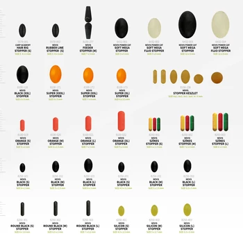 Hat különböző ütköző egyben. A harminc szilikon ütköző közül biztosan találunk minden horgászmódszehez, felszerelés méretéhez megfelelőt. |